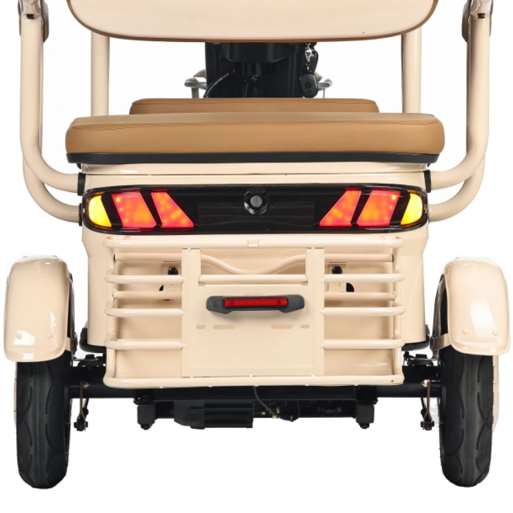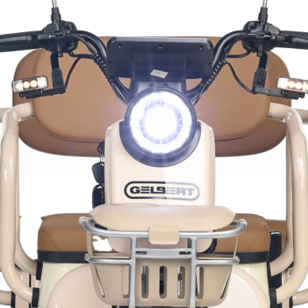 Электротрицикл Rutrike Gelbert Atlas 48V/60V 600Вт – это современное транспортное средство, созданное для комфортного передвижения в условиях города и за его пределами. Модель выделяется элегантным бежевым оттенком, придающим ей утончённый и стильный вид, а также продуманной компоновкой, которая обеспечивает отличную устойчивость и удобство управления.Благодаря двигателю мощностью 600 W, работающему на диапазоне напряжения 48/60 V, Atlas уверенно стартует и поддерживает стабильную динамику, достигая максимальной скорости до 25 км/ч – оптимального показателя для спокойного городского движения. Компактные 8‐дюймовые колеса способствуют надежному сцеплению с дорогой, что особенно важно при маневрировании в условиях ограниченного пространства.С весом 95 кг и способностью выдерживать нагрузку до 190 кг, этот электрический трицикл демонстрирует баланс между легкостью и прочностью конструкции. Его габаритные размеры (148×81×65 см) позволяют устройству занимать минимальное пространство при хранении и транспортировке, оставаясь при этом функциональным и устойчивым на дороге.Электротрицикл Atlas от Gelbert спроектирован с учетом современных требований безопасности и удобства эксплуатации – надежная система торможения в сочетании с продуманной эргономикой делает каждую поездку не только комфортной, но и безопасной. Эта модель станет отличным выбором для тех, кто ищет практичное и стильное решение для повседневного передвижения, совмещающее высокую технологичность с оригинальным дизайном.