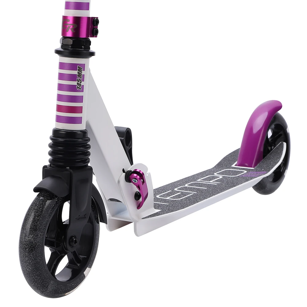 Двухколесный самокат CITY-RIDE TEMPO бело-фиолетового цвета – модель со складной конструкцией рассчитана на простую перевозку в багажнике автомобиля. Техника принесет радость и хорошее настроение маленькому ездоку (старше 3 лет), позволит принимать первые взрослые решения. Алюминиевая платформа для ног 100 мм*480 мм широкая, подойдет для быстрой езды, поскольку имеет нескользящую структуру. Наш интернет-магазин предлагает выгодное сотрудничество на равных условиях.