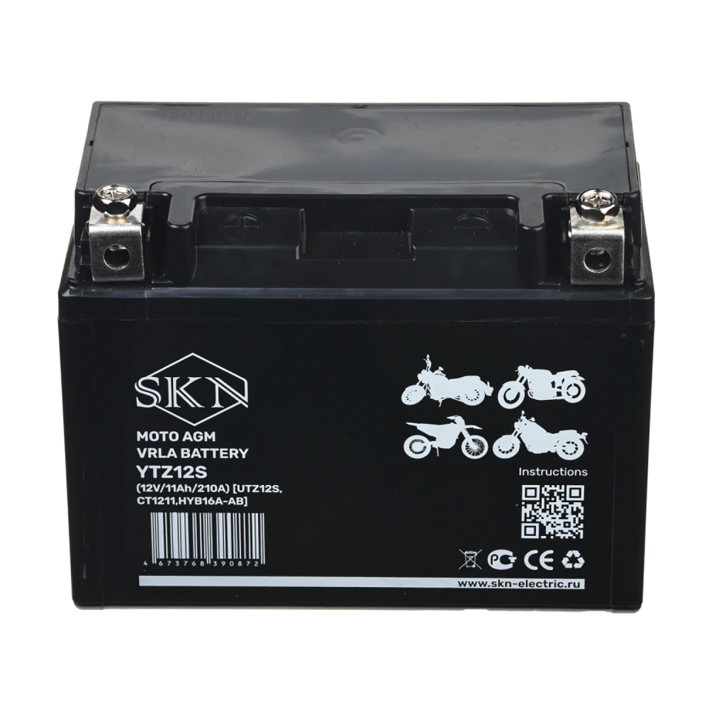 Аккумулятор стартерный для мототехники SKN YTZ12S (12V/11Ah/210A) [UTZ12S, CT 1211, HYB16A-AB]